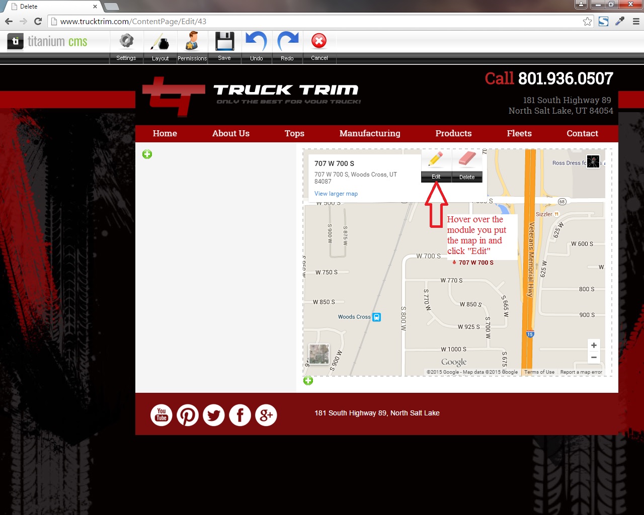 - Go back to your site and click on the page you want to add a map to and Click “Edit Page”.